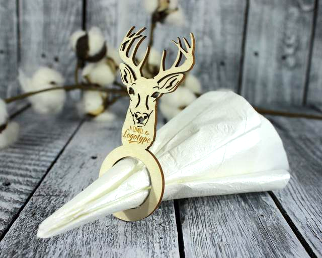 Obrączka na Serwetkę z Wzorem Świątecznym - Drewniana Dekoracja Stołu z Wygrawerowanym Logo
