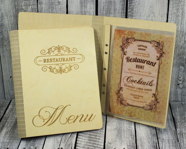 Elegancka Drewniana Oprawa na Menu A4 z Grawerem – gdzie design spotyka naturę.